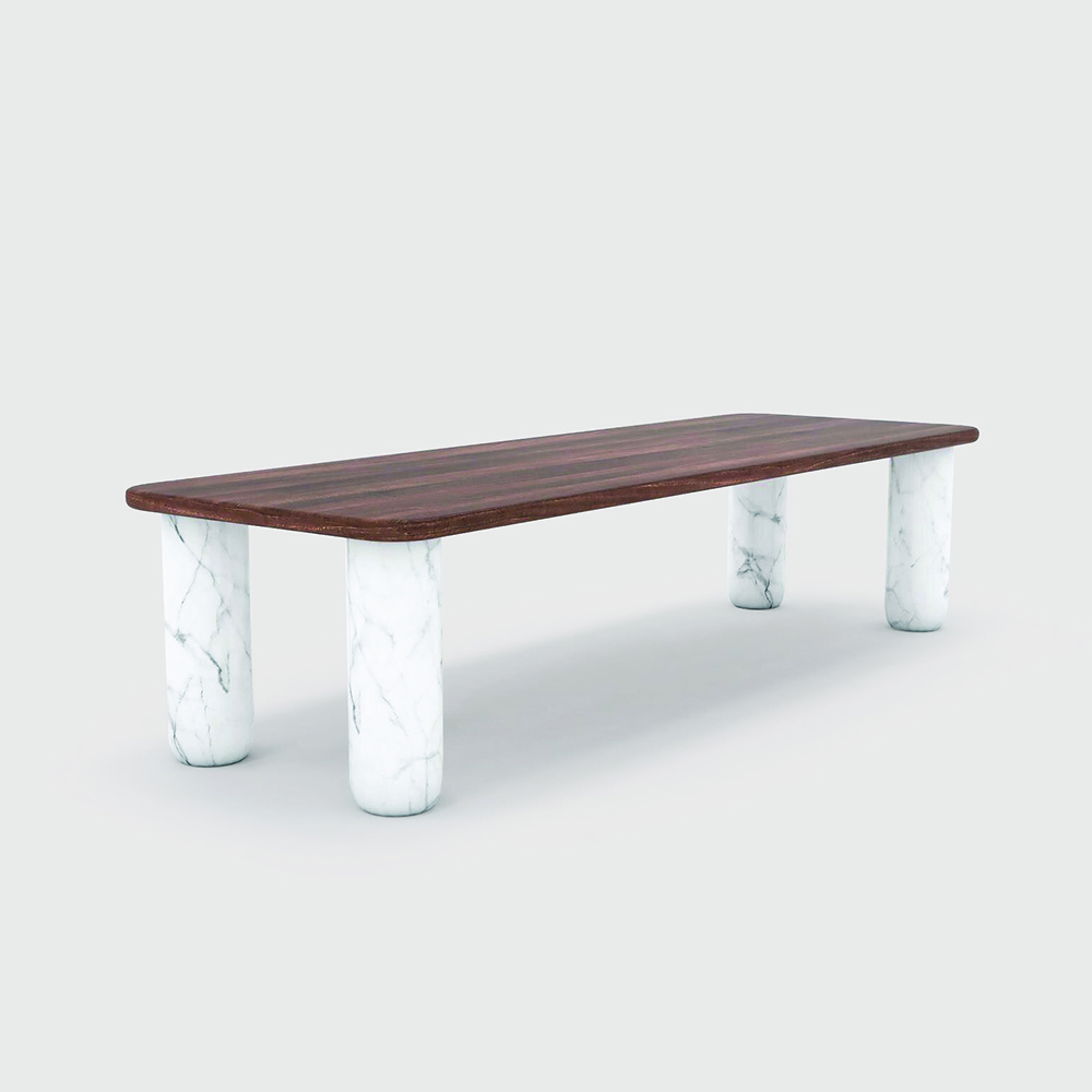This Sunday collection presented in 2018 is expending with new finishes. The table top is now available in marble in addition to the walnut and black ash versions. The top is available in all 3 La Chance marbles (green, white, and black) and all dimensions and combinations to create coffee tables, desks, consoles, and even large dinner tables.