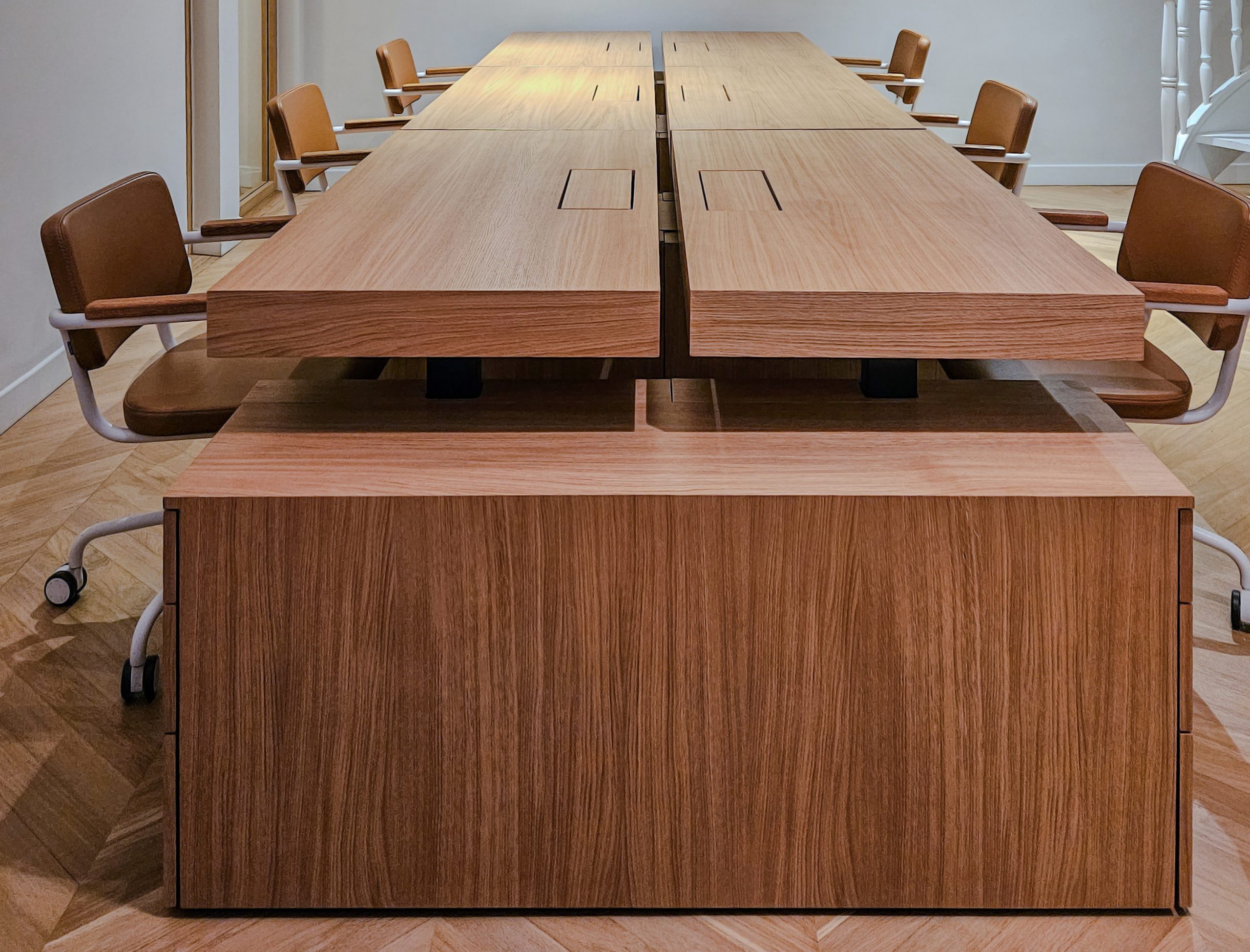 TYPE DE PROJET : Développement et fabrication de bureaux dynamiques Dolmen avec caissons de rangement
